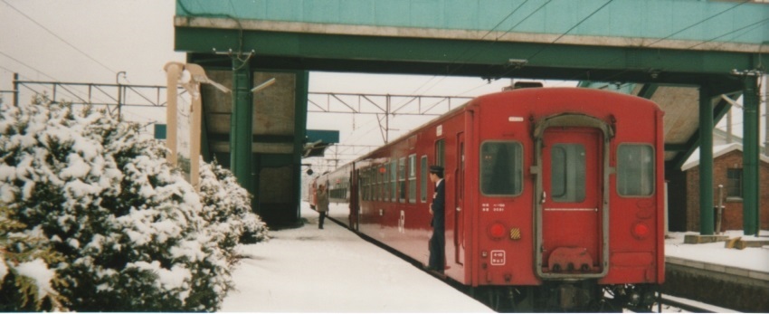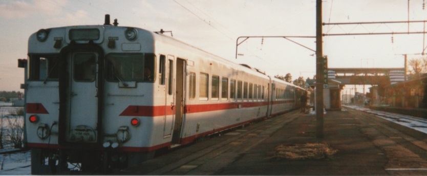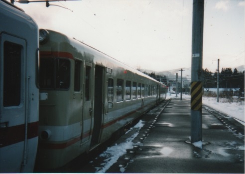 次にキハ58です。この頃の田沢湖線で乗車しました。当時は現在のようなE3系が東北新幹線へ直通する特急ではなく、485系「たざわ」が電車、普通列車は気動車のままでした。この列車は先頭からキハ40+キハ58+キハ58+キハ58で、前方2両が秋田車、後方のアイボリーに赤いラインの2両が盛岡車です。
