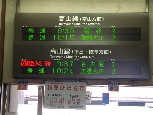 この改正では、「ひだ」の15号が現行より1時間繰り下げ、17・19号が約JR30分程度の