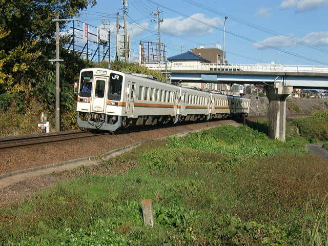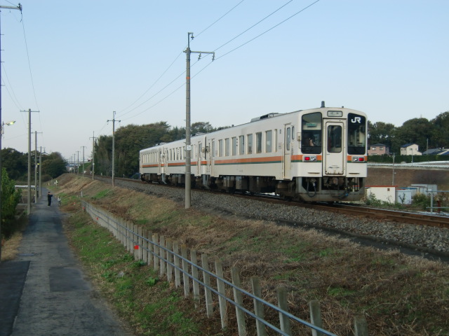 この日は、坂祝の状況を確認するつもりで先の3721C列車に乗車しました。この時は木々の色づいている部分が先端のみであったのですが、キハ11も珍しい4両編成多数ということで、美濃太田駅手前のカーブを訪れました。