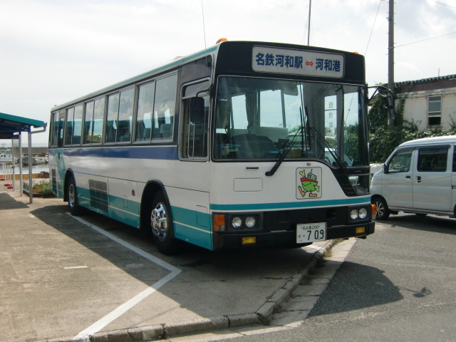 そして、河和にはもう一つ、古そうなものが存在します。それが「河和駅~河和港間の送迎バス」です。河和港に発着する船の利用客のために、河和駅との間をバスで連絡するものですが、この車両に個人的には注目しています。名鉄バスの路線の車両を目にしなくなった後、ここで類似のものを見かけた覚えがあるためです。