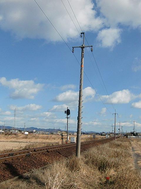 さて、高山本線は電柱が建っていますが、これは車両2両分程度の間隔として目安にすると計算しやすいと思います。この電柱は、太多線沿線には建っていない場所があります。