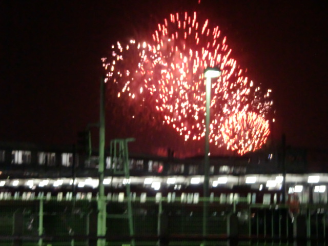 しかし、、自由歩道よりも高く上がらなかったので、この位置で花火を併せて撮ることは不可能でした。