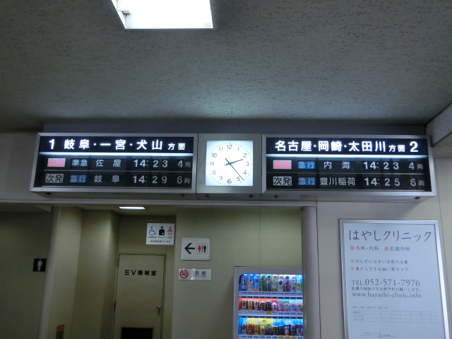 美濃太田区にあった11形、40形の大移動が一段落し、今回は再びフラップ式発車標(行先案内表示器)を巡りたいと思います。 以前も述べたように、なぜか名古屋市内の駅にも残っており、それが栄町、栄生と、揃って「栄」のつく駅名となっています。